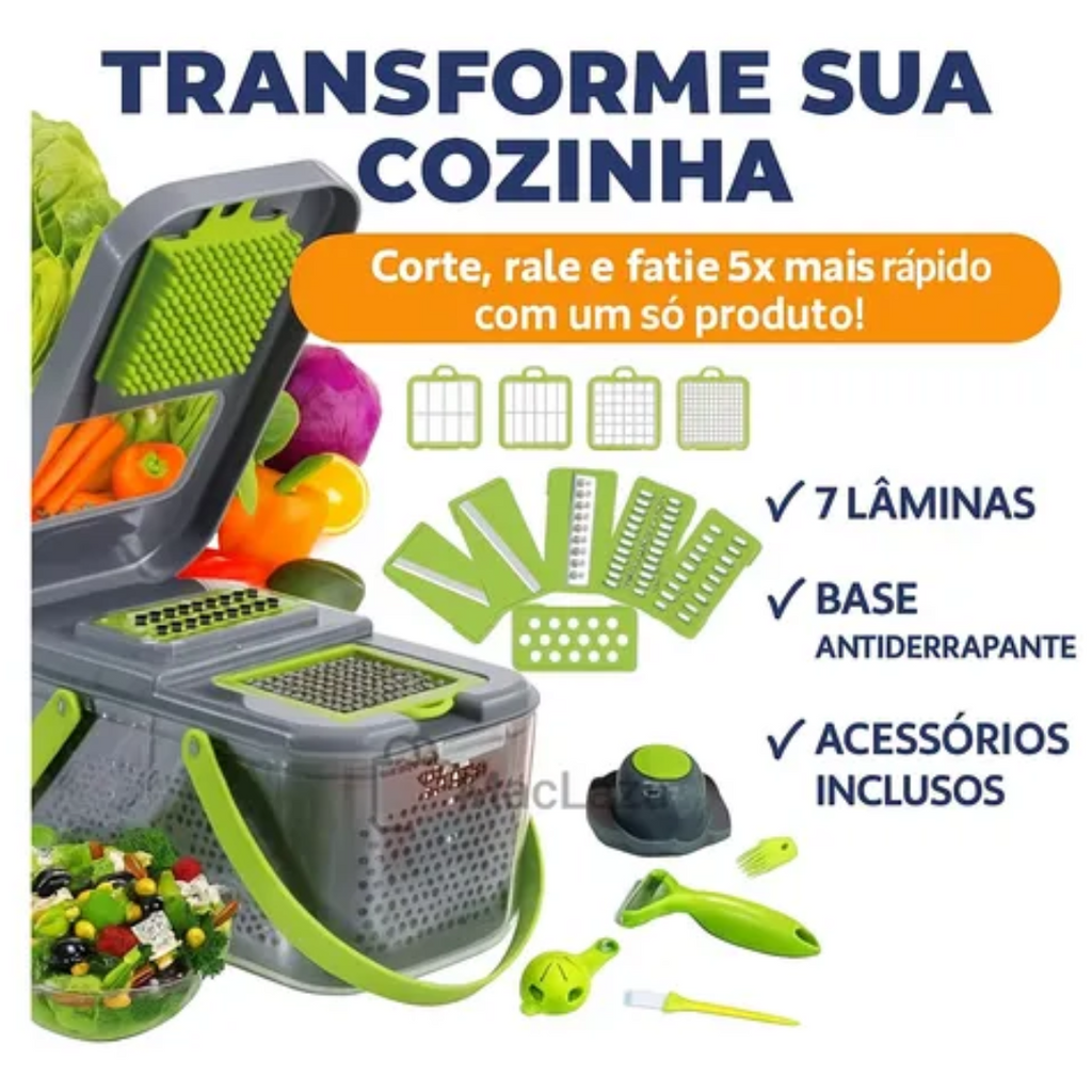 🔪 Cortador e Ralador Multifuncional 16 Peças 🥕