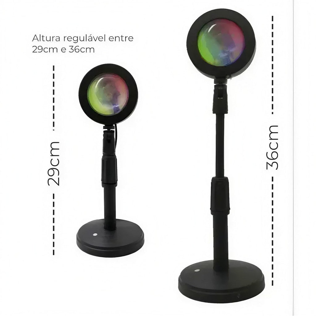 Com a luz noturna projetora de pôr do sol, transforme suas noites em um espetáculo de cores e beleza natural. Crie uma atmosfera relaxante e envolvente em seu ambiente e desfrute de momentos de tranquilidade e serenidade como nunca antes.