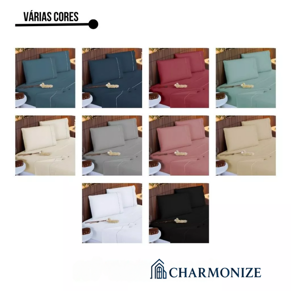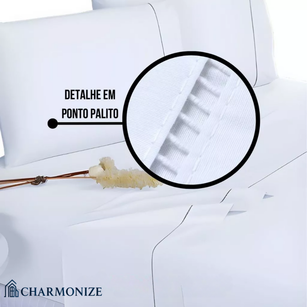Descubra o toque macio e sofisticado do Jogo de Lençol King 400 fios Micropercal com acabamento em ponto palito!