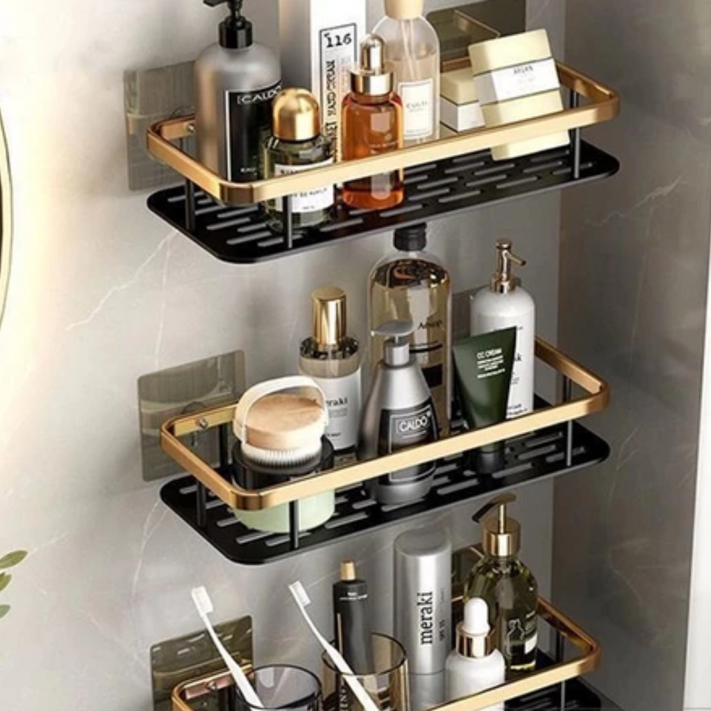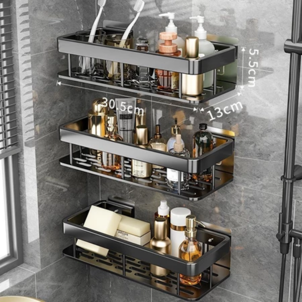 🛁✨ Kit 3 Suportes de Prateleira de Canto – Alumínio Espacial