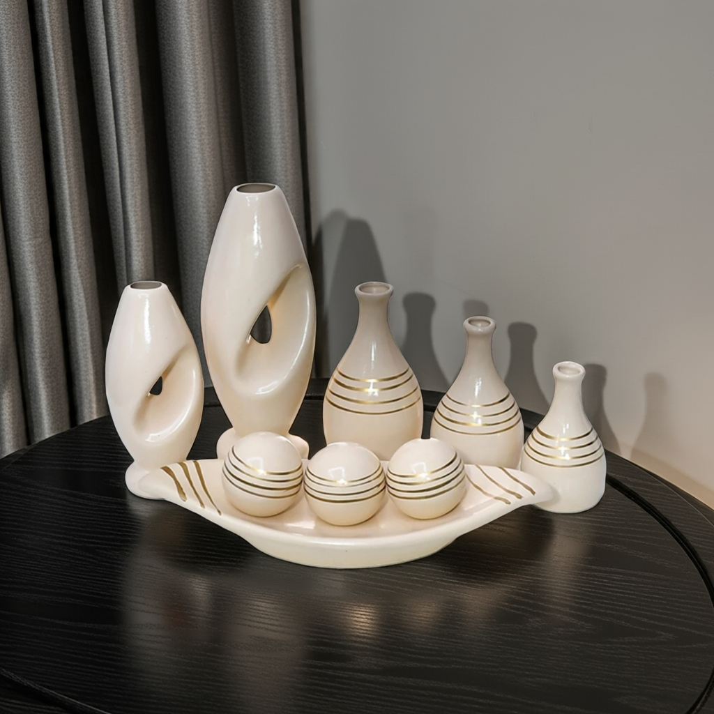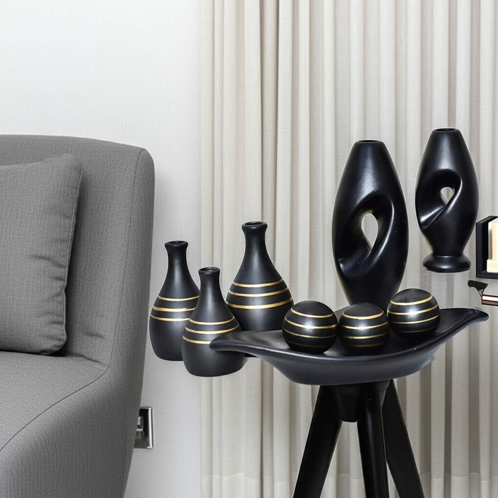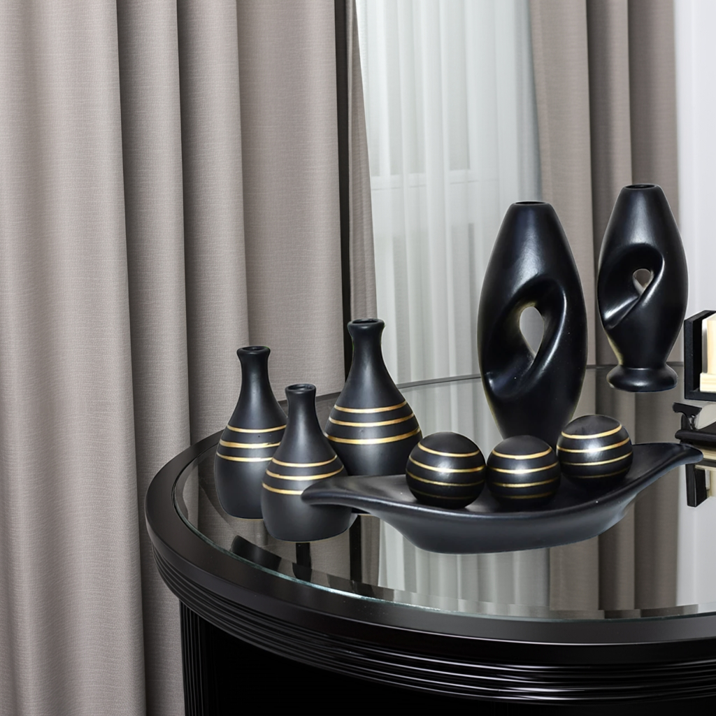 Você recebe 3 trios de vasos (totalizando 9 peças) que combinam entre si, criando um visual moderno e harmonioso.