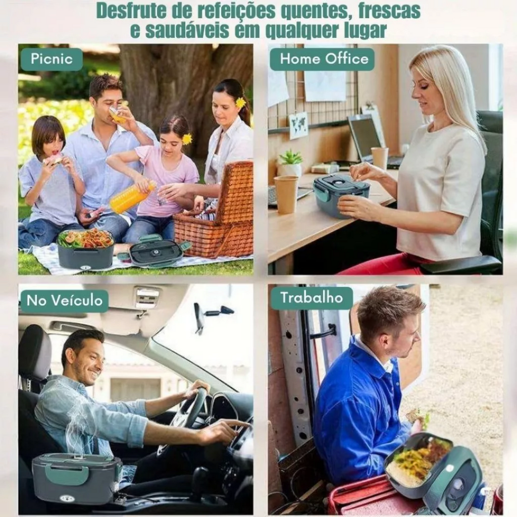 A Marmita Elétrica Veicular Bivolt é perfeita para quem passa horas na estrada, no trabalho ou longe de casa. Basta conectar na tomada veicular (12V) ou na tomada convencional (110V/220V) e pronto: comida quente em minutos!