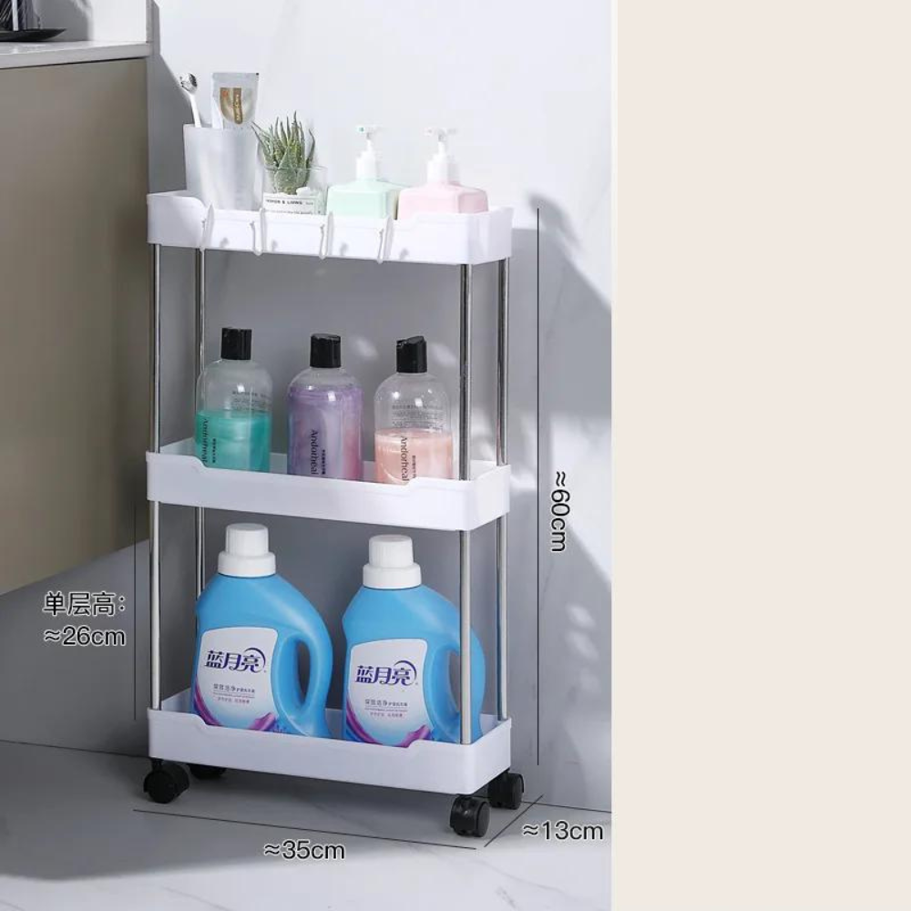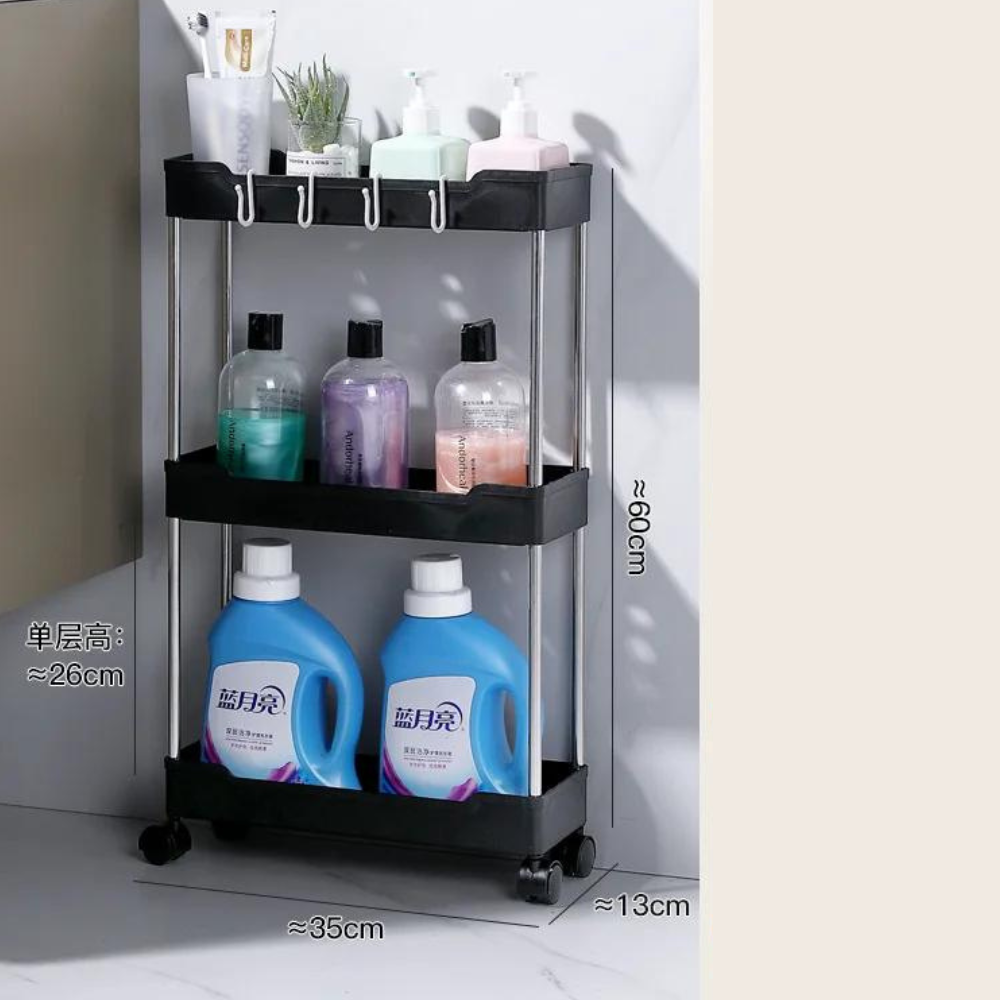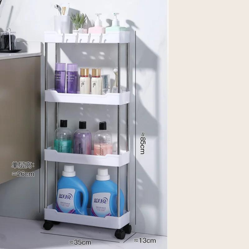 A Prateleira Vertical de Armazenamento Multifuncional Móvel foi pensada para otimizar cada cantinho da sua casa.